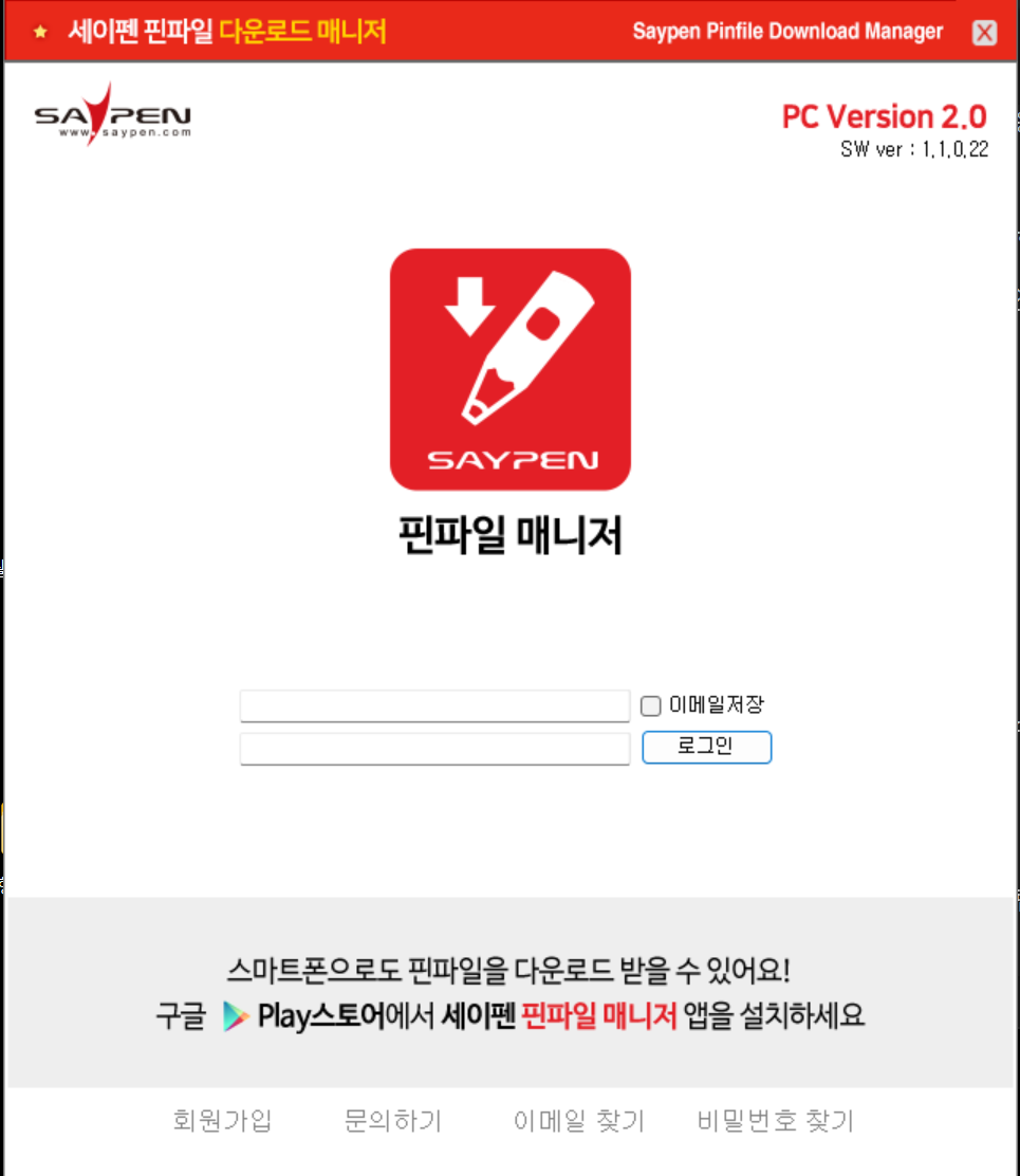 : 가입한 세이펜 아이디와 패스워드를 입력합니다.