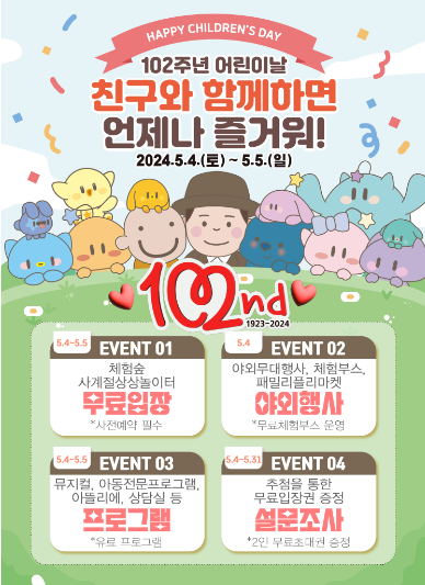 - 내용 : 어린이날 기념식, 역사인물 프로그램, 55개의 놀이 프로그램이 진행됩니다.