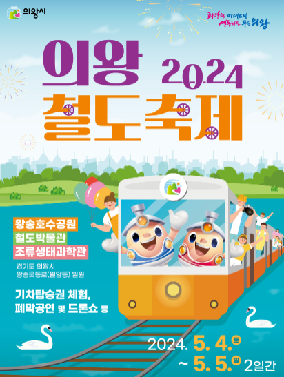 - 내용 : 국내 유일의 철도 관련 축제로 이번에 18회를 맞이한 의왕시 대표 축제입니다. 4일에는 시민참여 공연과 함께 개막 특별 공연으로 아이들을 위한 뮤직퍼포먼스, 요들송, 서커스, 디제인 기차놀이, 창작뮤지컬 공연이 준비되어 있습니다. 5일에도 시민참여 공연과 함께 폐막 특별공연으로 합창단, 국악예술단, 유명가수 공연, 드론퍼포먼스가 진행됩니다.